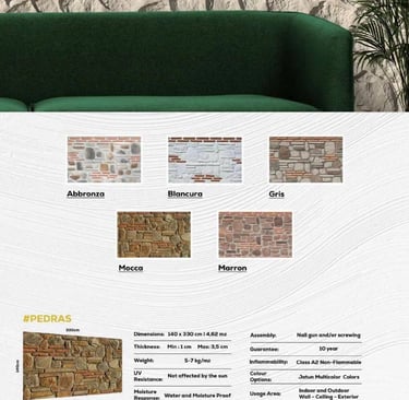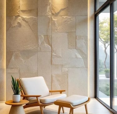 Stone wall panels bring natural character and timeless elegance into any space. With their authentic textures and refined finishes, they create a strong visual impact that adds depth, warmth and sophistication to interiors. Our panels are crafted from natural stone with a supportive backing, ensuring both strength and easier installation. Each panel has a thickness of 4–9 mm of natural stone with an additional 2 mm supportive layer, providing stability without unnecessary weight. On average, they weigh around 14–16 kg per square meter, making them solid and durable while still practical for modern projects. Stone wall panels are ideal for stores, hotels, villas and residences, whether used as exterior facade coverings or in interior design. They add character and elegance to lobbies, bedrooms, bathrooms, TV units and even elevator walls, making them a versatile choice for both hospitality and residential projects.