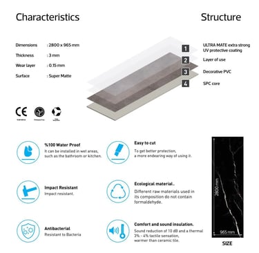 SPC (Stone Plastic Composite) wall panels are a modern solution that combines strength, stability and refined design. Made from a blend of natural stone powder and polymers, they are resistant to moisture, stains and deformation, making them ideal for hotels, restaurants and residential spaces that require both durability and aesthetics. Unlike traditional wall coverings, SPC panels do not warp when exposed to humidity or steam, which makes them perfectly suited for bathrooms, kitchens, lobbies and other high-use areas. Thanks to their large format and innovative installation systems, they are quick and cost-efficient to install, without the need for heavy preparation or additional wall treatments. With a wide variety of finishes available – from wood and stone effects to contemporary textures – SPC wall panels bring flexibility and long-lasting style to any interior. Their UV-resistant surfaces help maintain colors and patterns over time, ensuring that walls remain both elegant and practical for years to come.